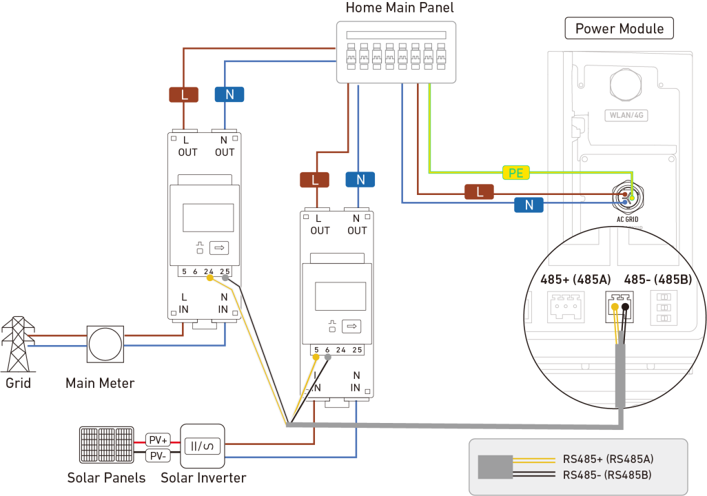 1×DTSU666 (3 CTs) + 1× DDSU666 (No CT)
