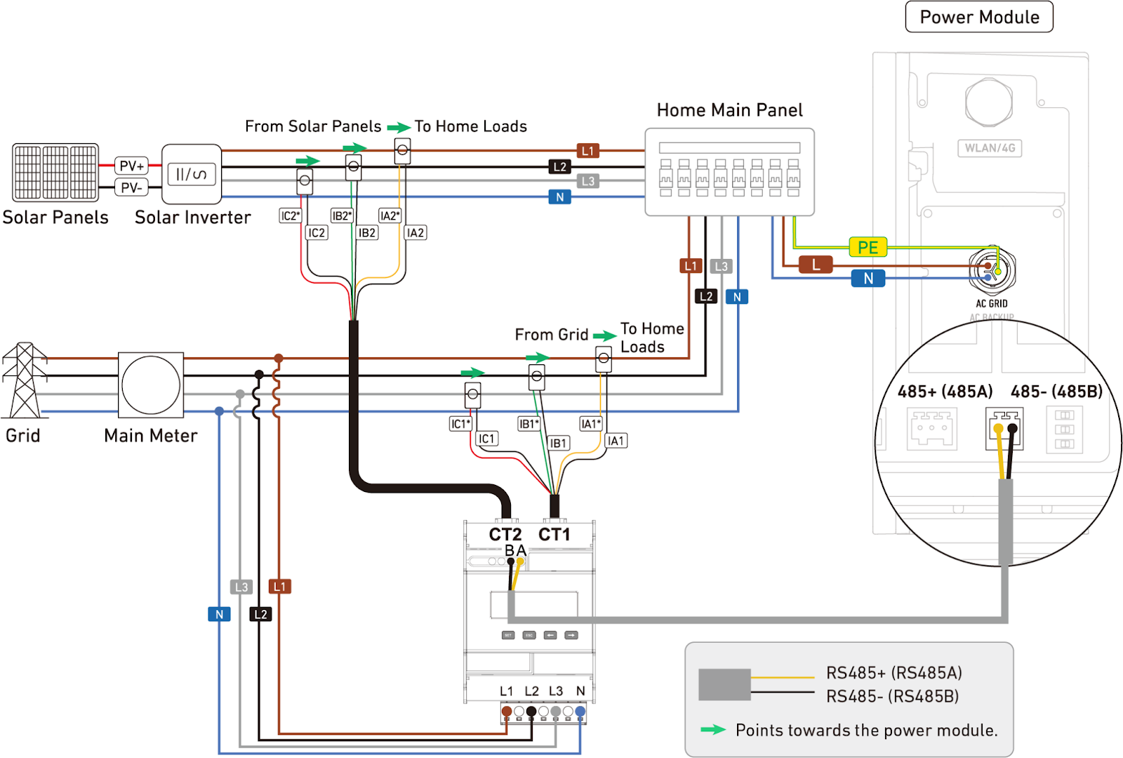 1×DTSU666 (3 CTs) + 1×DDSU666 (1 CT)