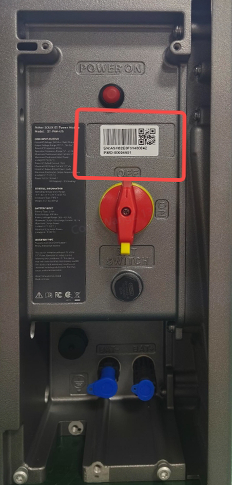 The serial number (SN) on Anker SOLIX X1 products is a unique identifier made up of digits and letters. It's usually found on the main body of the product—see below for model-specific locations to find it easily.