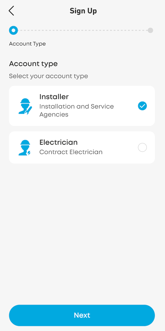 If you are the manager of an installer company, choose Installer.