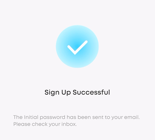 Now you have signed up successfully. You will receive an initial password in the email inbox.