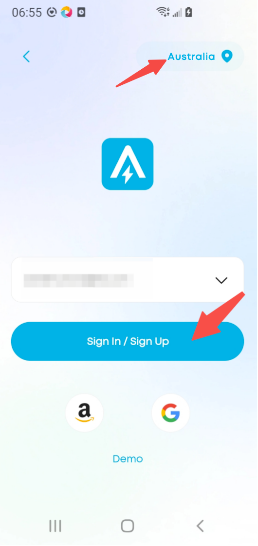 After confirming that the region displayed in the upper right corner is your current location (if it is incorrect, please change it manually), enter the email you want to register, and then click Sign In/Sign Up.