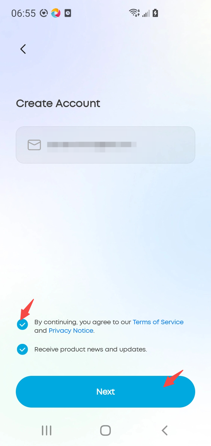 After entering the "Create Account" interface, read and agree to the relevant terms and notices, then click "Next".