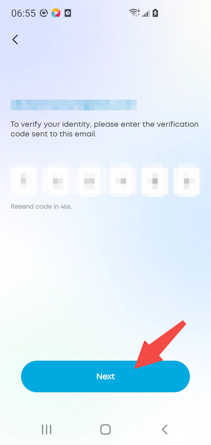 Enter the 6-digit code to activate your account, then click "Next".The digit code is valid within 10 minutes.