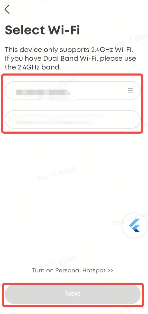 4. Select the new Wi-Fi name, then enter the corresponding Wi-Fi password, and click "Next".