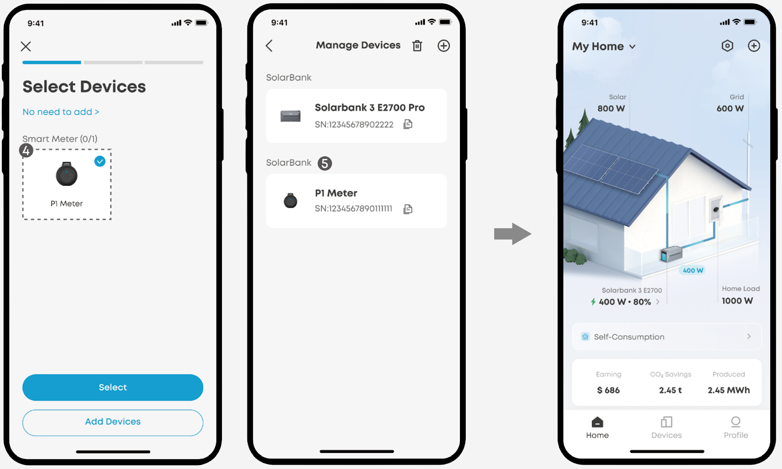 Method 1: Add the device directly from the app's Home System page. Follow the steps below to reset and reconnect P1 Meter.